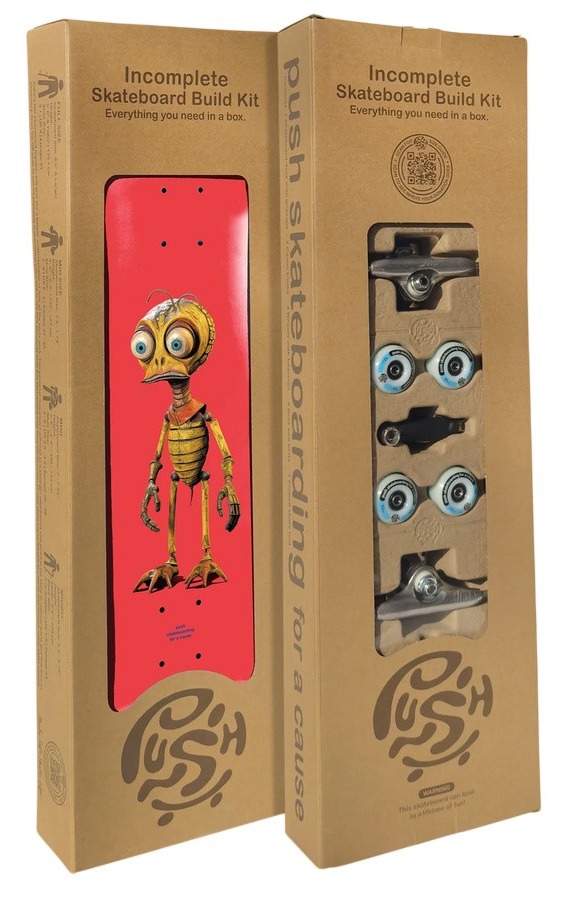Deskorolka Push Bee Zombie InComplete 7,75" to zestaw typu DIY (do samodzielnego skręcenia), który zawiera wszystkie elementy potrzebne do złożenia pełnej deskorolki. Jest zapakowana w pudełko i przygotowana tak, aby po złożeniu była od razu gotowa do jazdy.