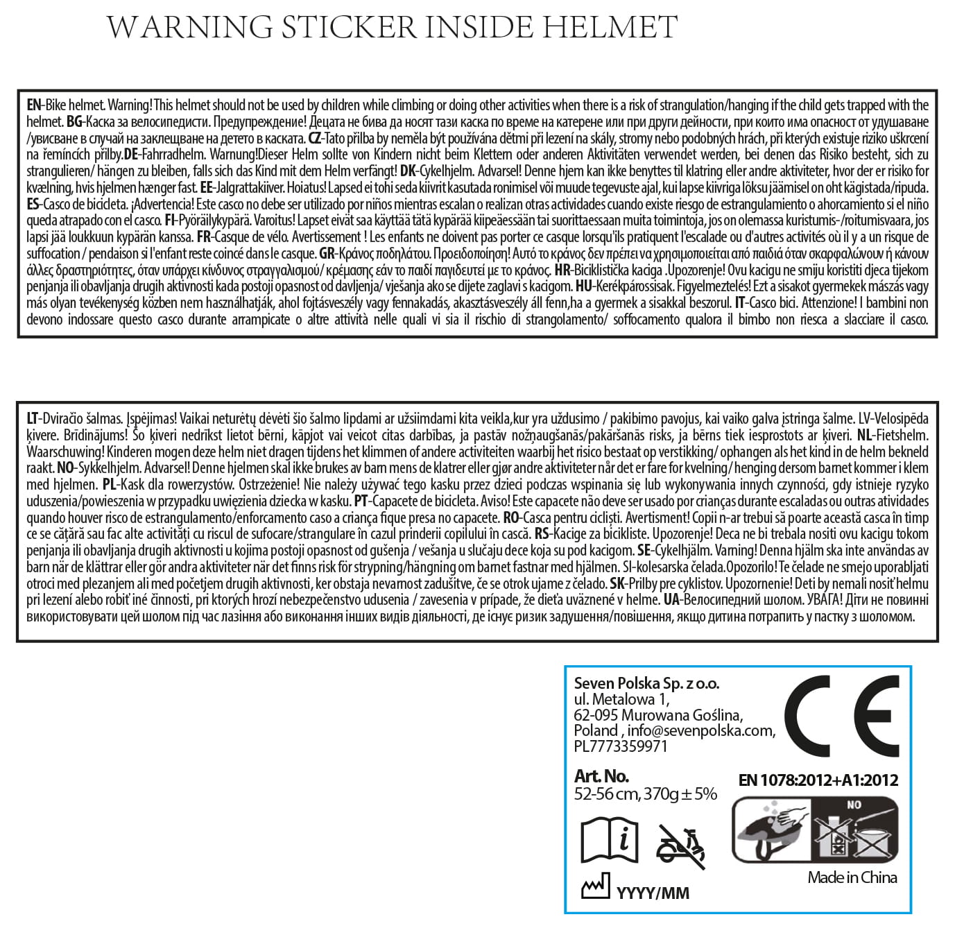 Kask wykonany jest z wysokiej jakości czarnego styropianu EPS i wewnątrz posiada miękką, wygodną wkładkę.