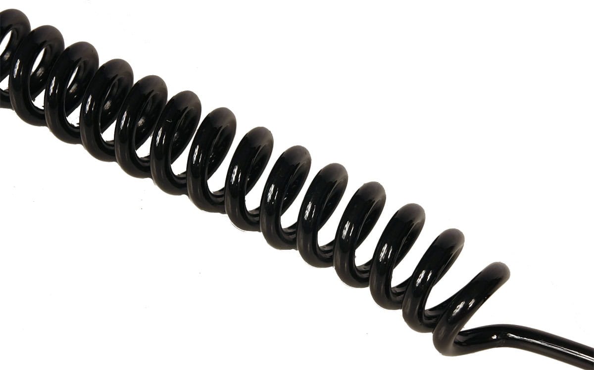 Przewód w formie rozciągliwej sprężyny nie ciągnie się za deską, lecz zwija się i pozostaje na desce.